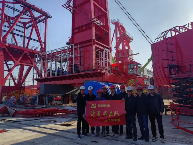 华新机电公司坚持以党建引领,成立项目党员突击队,充分发挥党支部战斗堡垒和党员先锋模范作用,由党员领衔的突击队,冲锋在前,勇担重任。2024年2月12日大年初三,华新机电公司党委书记、执行董事、总经理黄生湘来到海重重工生产基地,深入调研、检查项目生产安装情况,并慰问坚守一线的党员突击队及项目团队。