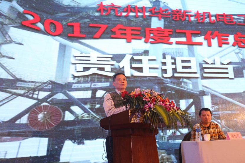 会上,刘建胜总经理回顾了过去一年来的努力、收获、锐进和艰辛,并对2018年的工作作出了部署,希望华新公司全体员工在未来的道路上责任担当,继续前行。徐学明董事长肯定了去年取得的成绩,同时也指出了存在的问题,希望大家扬长避短,在集团公司的帮助和引领下开创华新公司美好的明天。