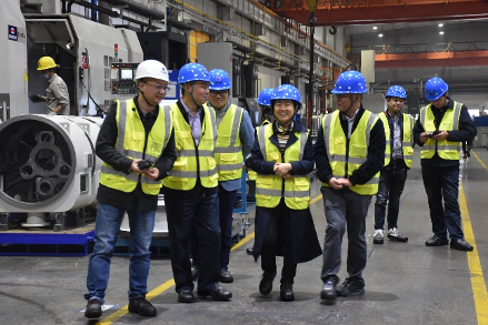 天桥起重党委委员/纪委书记黄建湘、华新机电总经理王吉如一行先后参观了南高齿展馆中国传动馆以及重型传动工厂,深入了解南高齿企业发展和起重产品情况,对南高齿的经营管理、车间生产及齿轮产品的标准化、智能化程度表示赞许。